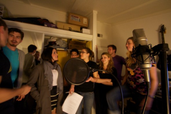Recording with Cazz! We took our very talented musical ensemble to lay down some bagillion part harmonies with Cazz Brindis, who is writing some additional music for the movie.